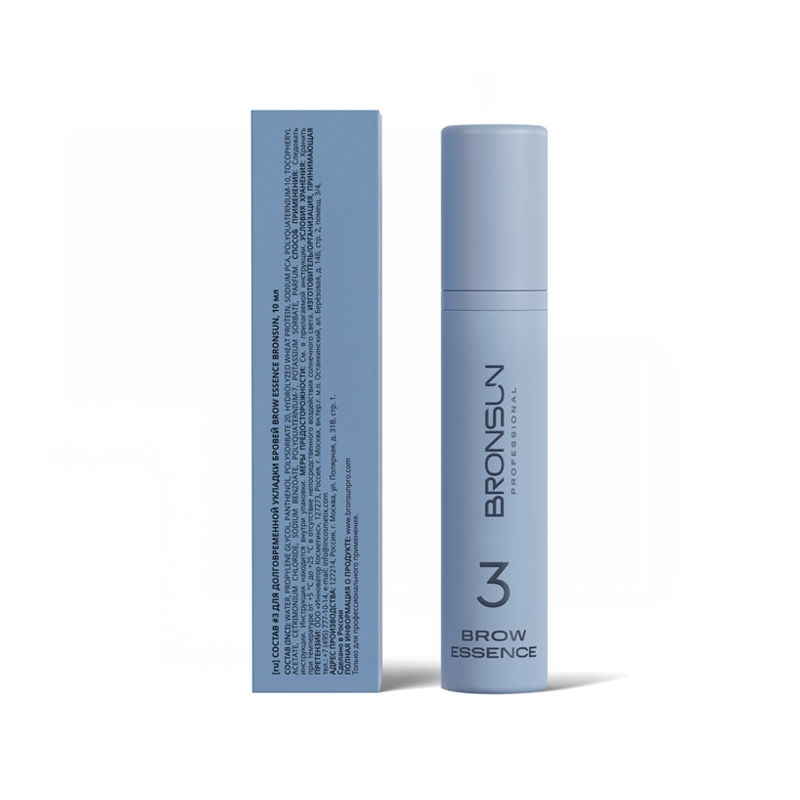Состав #3 для долговременной укладки BROW ESSENCE BRONSUN используется на завершающем этапе процедуры долговременной укладки. Удобная гелевая консистенция позволяет зафиксировать финальную форму бровей, не склеивая волоски.